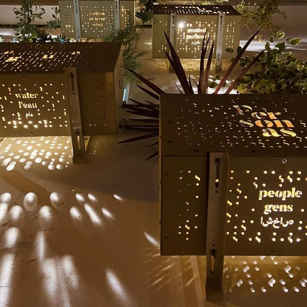 Durante el transcurso de los talleres hemos ido acumulando palabras que nombran lugares, personas, plantas o pájaros del barrio. No todas nos resultaban familiares al inicio, así que empezamos a grabarlas en las mashrabiyas para después dejarnos asombrar por las asociaciones que comenzab
