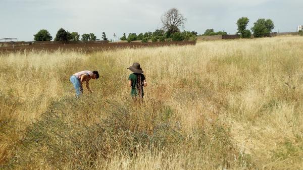El sábado 12 de junio un grupo de 8 espigadores acudimos a un descampado situado en el límite sur del parque Plata y Castañar, un no lugar desprovisto de aspersores de riego, sin árboles para cobijarse de los rayos del sol, donde los jardineros municipales ya no tienen jurisprudencia para desenfu